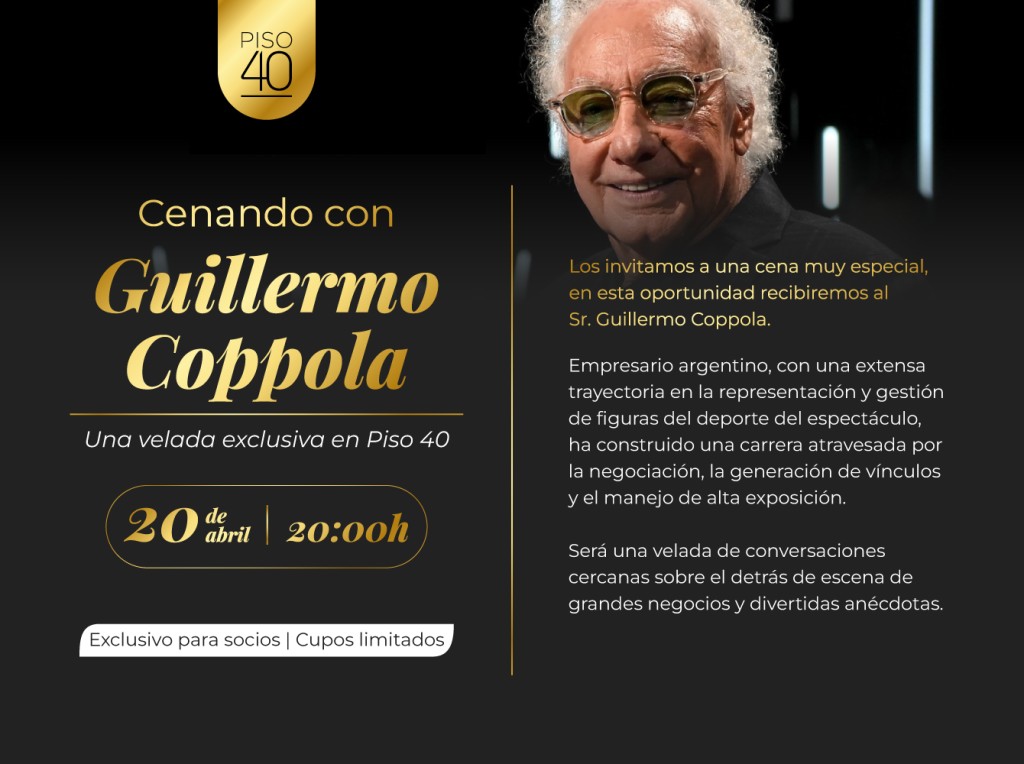 El 20 de abril nos visita Guillermo Coppola, con una extensa trayectoria en la representación y gestión de figuras del deporte y el espectáculo.