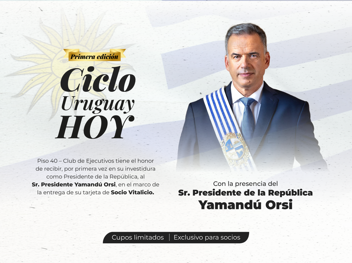 El 23 de marzo a las 18:00, el Sr. Presidente de la República visita Piso 40 en el marco de la entrega de su tarjeta de Socio Vitalicio.