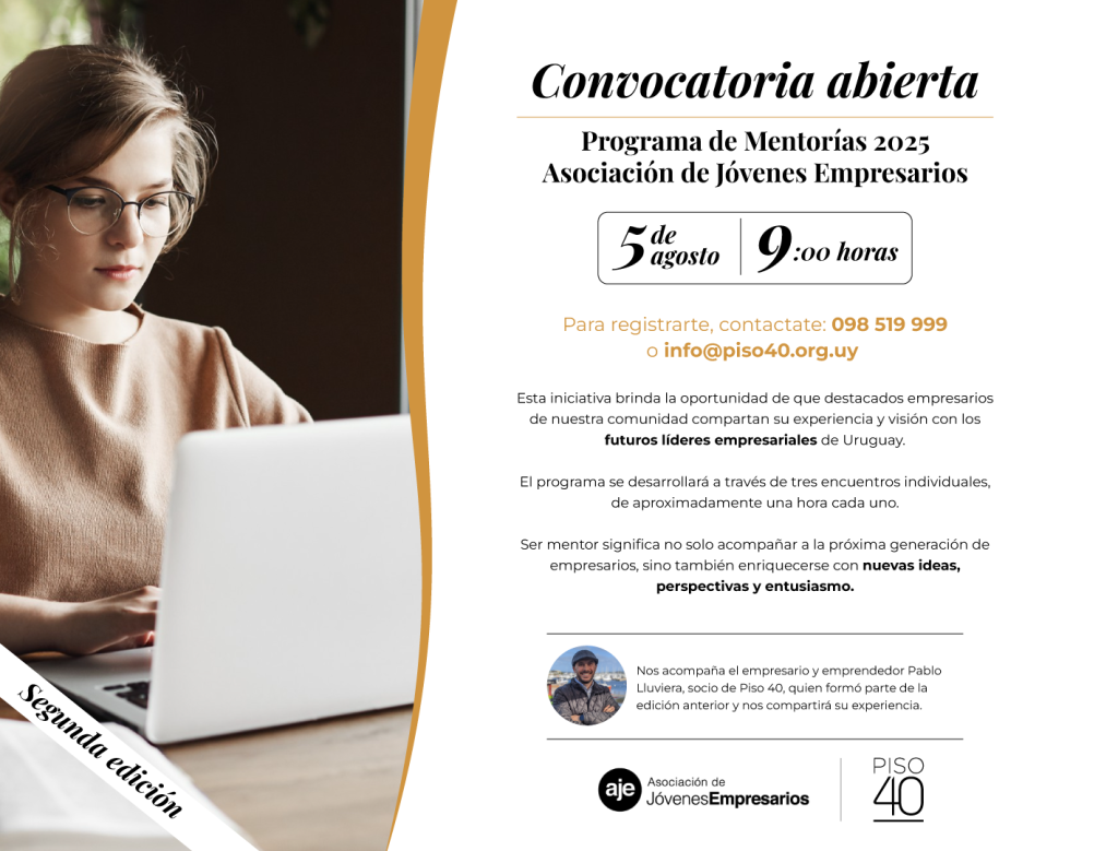 Ya se encuentra abierta la convocatoria para la segunda edición del Programa de mentorías de la Asociación de Jóvenes Empresarios. Los invitamos a participar de esta oportunidad en la que podrán acompañar y compartir su experiencias con las nuevas generaciones.