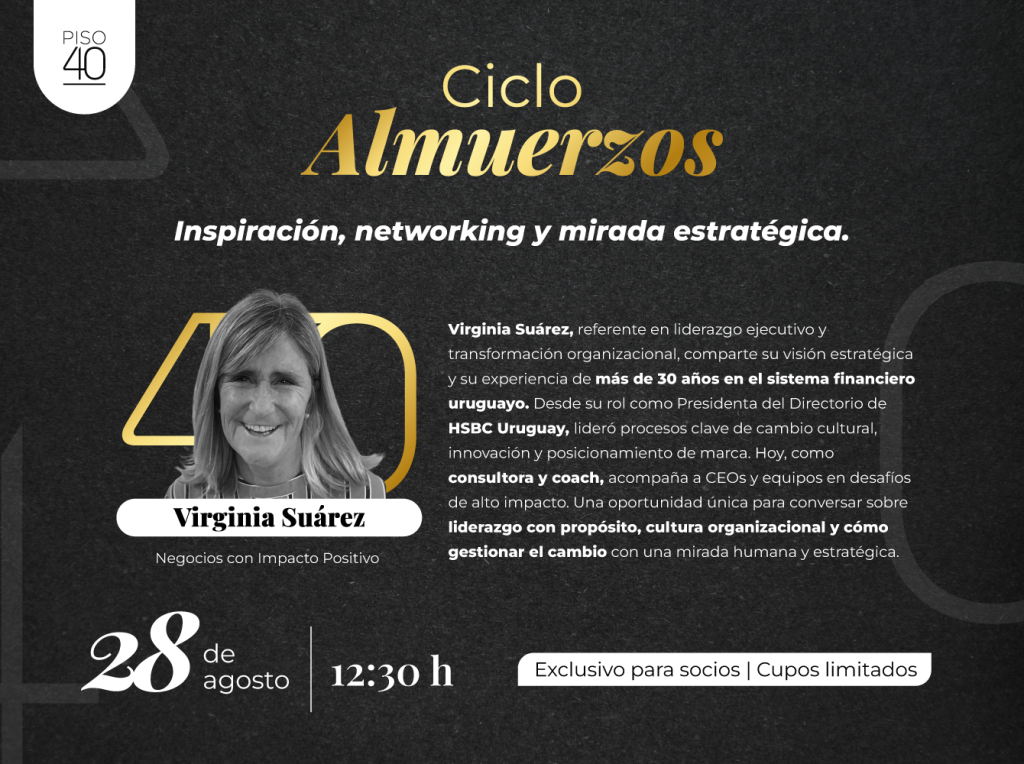 Con más de tres décadas de experiencia en el sistema financiero uruguayo y una destacada labor al frente del Directorio de HSBC Uruguay, Virginia Suárez lideró procesos estratégicos de cambio cultural e innovación. Hoy, desde la consultoría y el coaching, acompaña a CEOs y equipos en contextos de alta exigencia.